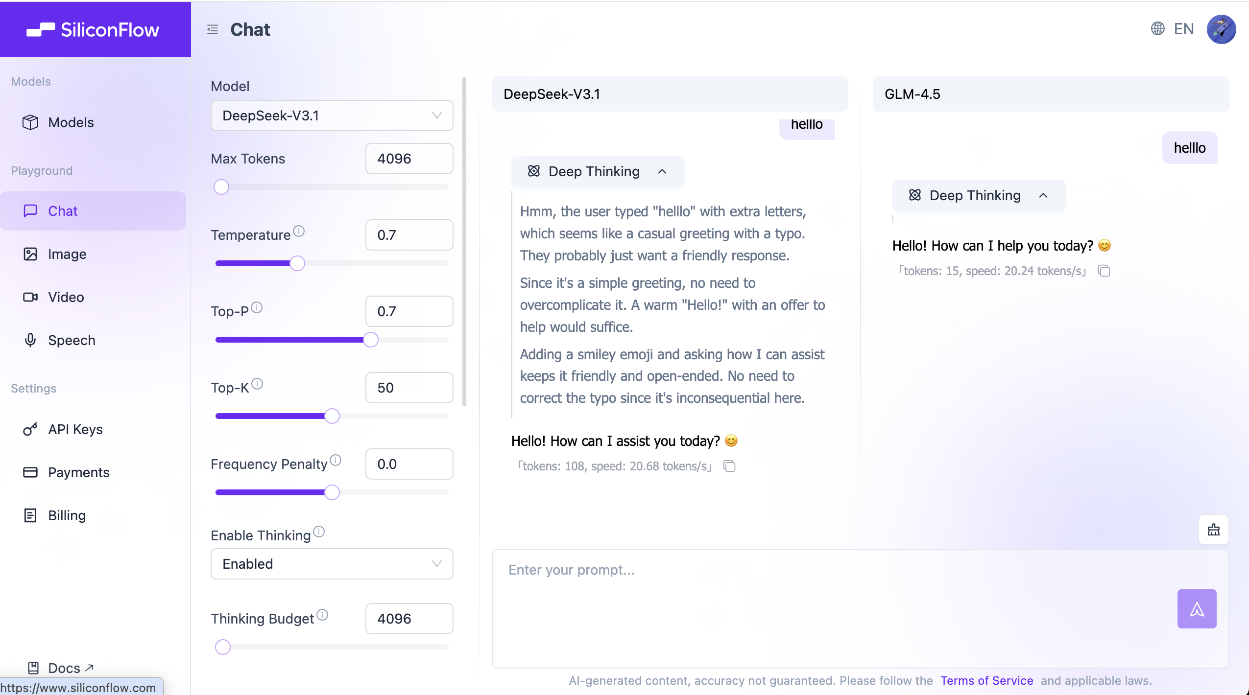 💡 操作提示:点击右侧侧边栏的 "Add Model for Comparison",可以左右分屏对比两个模型(比如 Qwen-Max vs Llama-3)对同一个 Prompt 的反应。