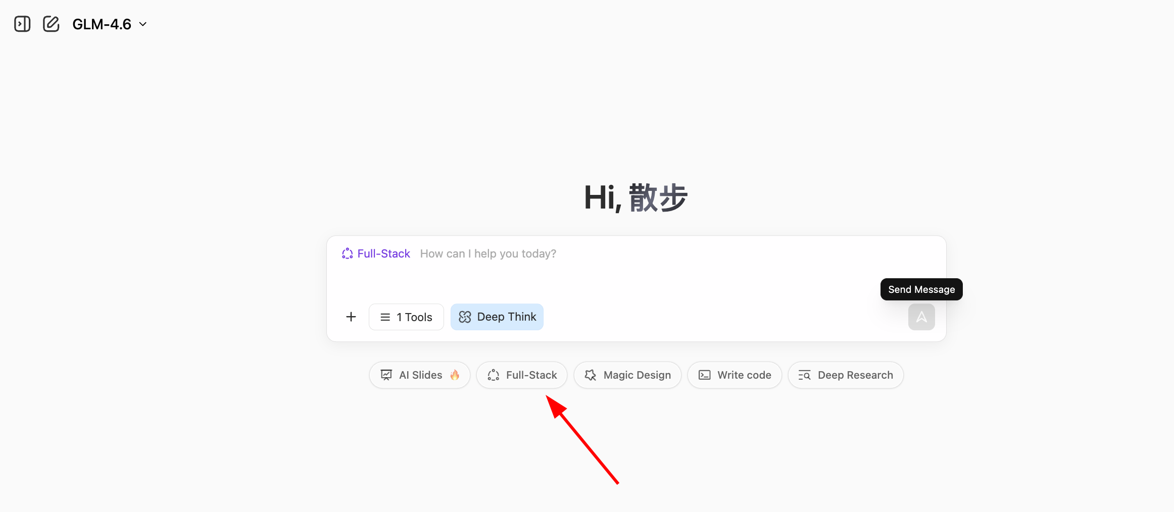 首先,请你打开课程中使用的实验网页 z.ai,z.ai 是由智谱 AI(中国领先的大语言模型公司之一)开发的 AI 平台,其核心能力由智谱自研的 GLM 系列大模型提供支持。该平台集成了多项 AI 功能,包括幻灯片生成、海报设计和全栈开发等。在本教程中,我们将重点介绍其全栈开发模块的使用。