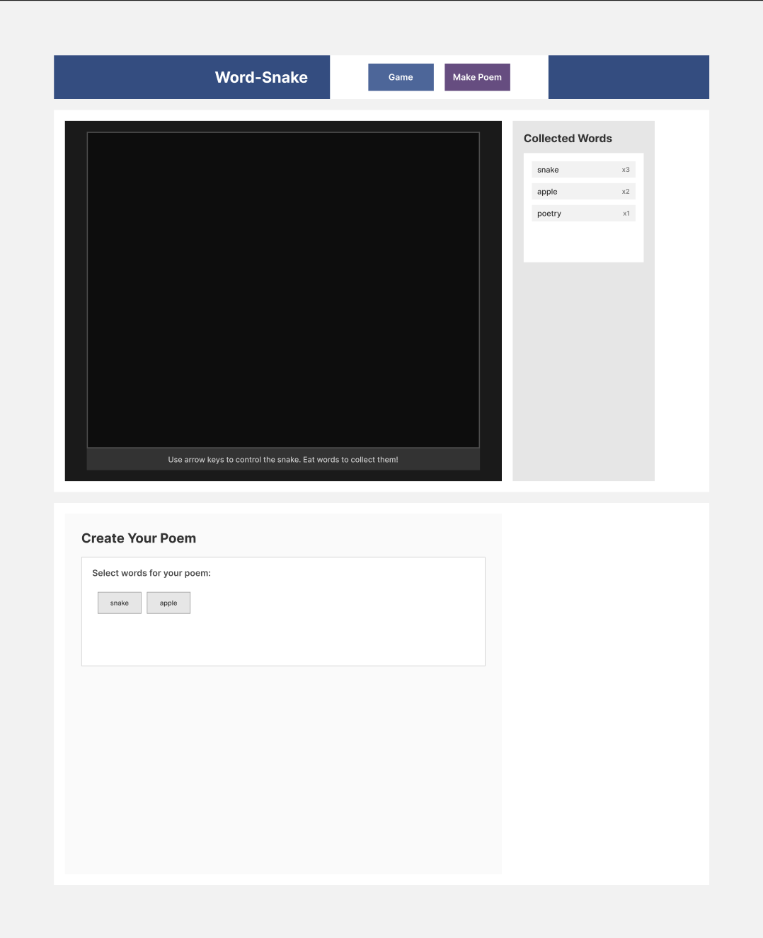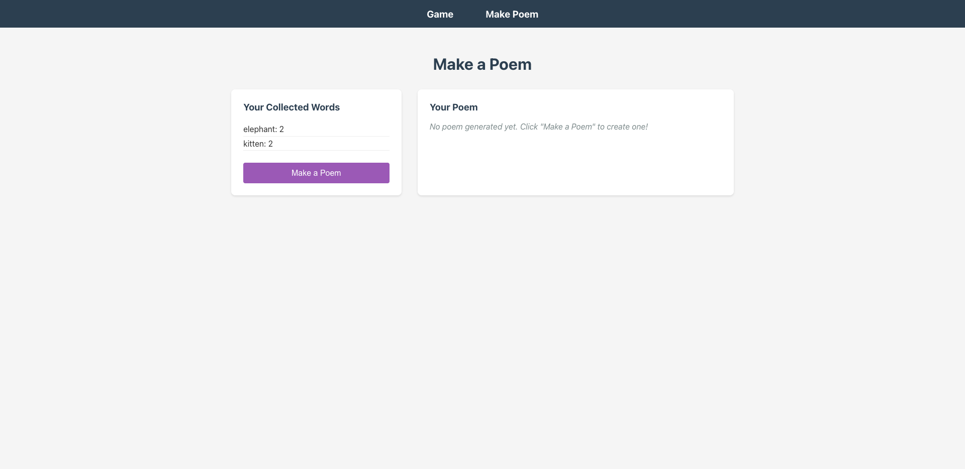 - 提供一个按钮,将当前收集的单词发送给后端生成一首诗。