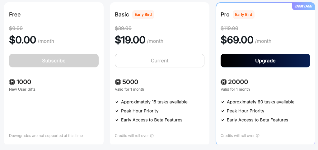 - 价格: 免费版在复杂项目中很可能无法顺利从头跑到尾,因此更推荐付费升级,以确保项目可以完整构建。