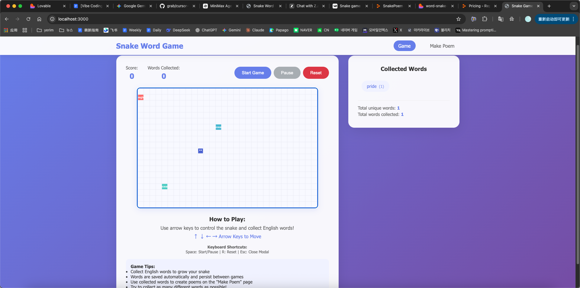 - 游戏结束后,已收集的单词仍然保留,并在新一局中延续。