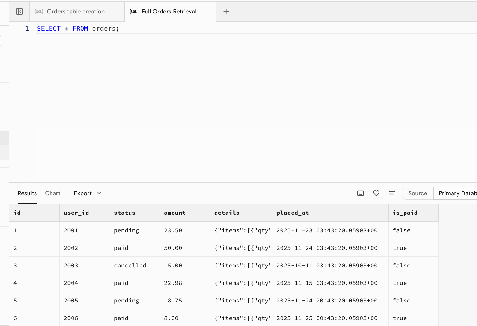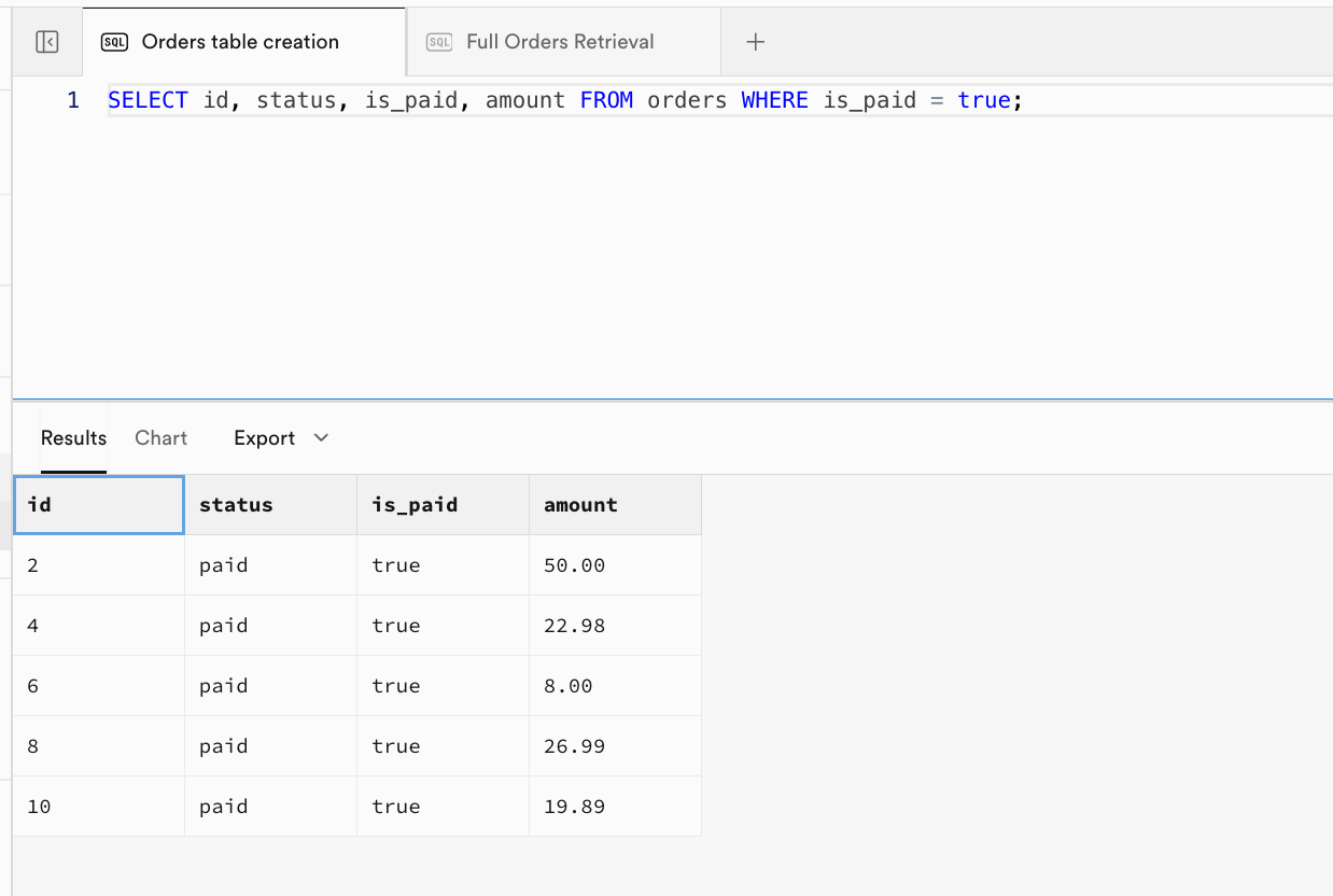 | order_id | user_id | amount | status |