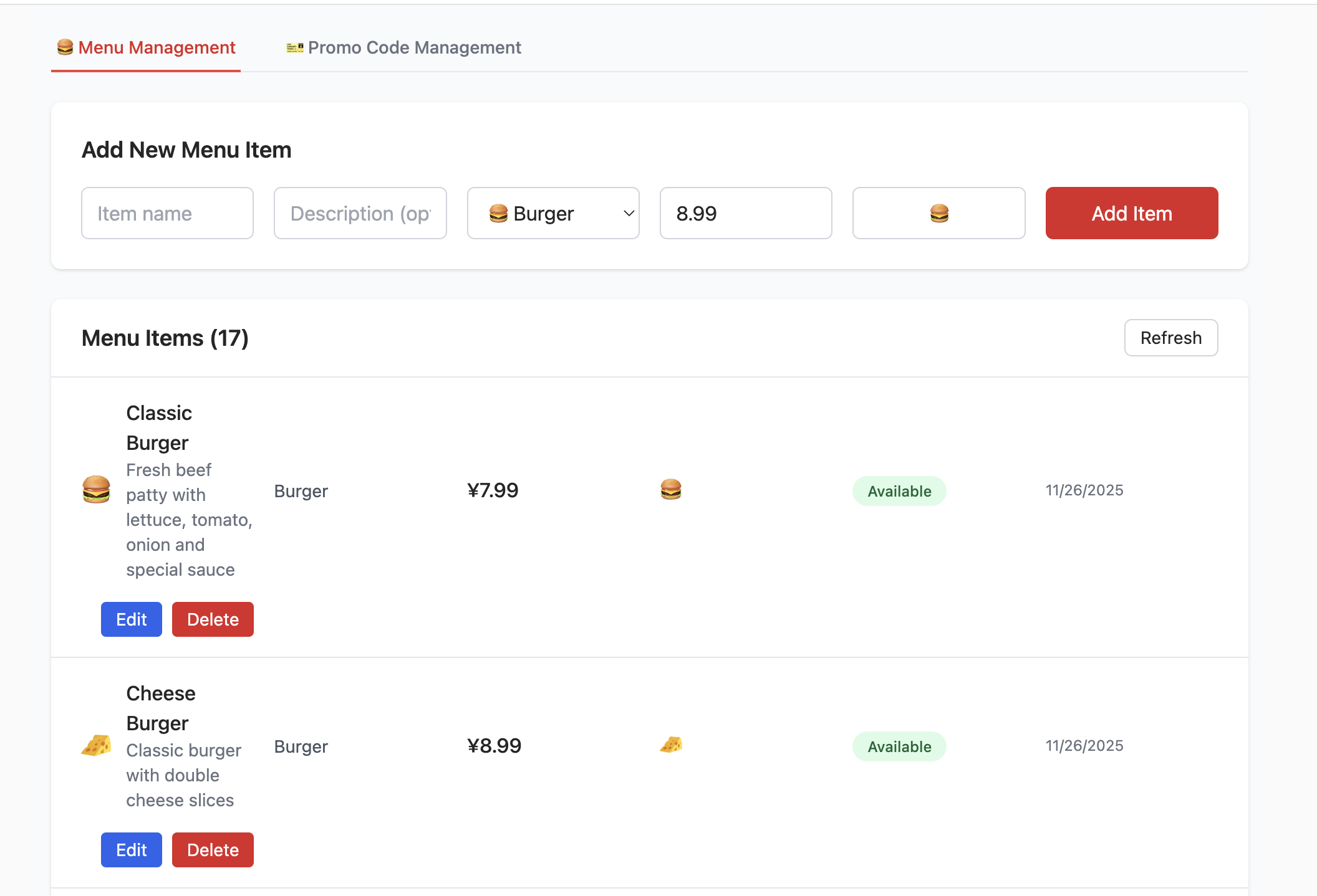 { "sku": "BG-001", "name": "牛肉汉堡", "quantity": 1, "price": 18.00 },