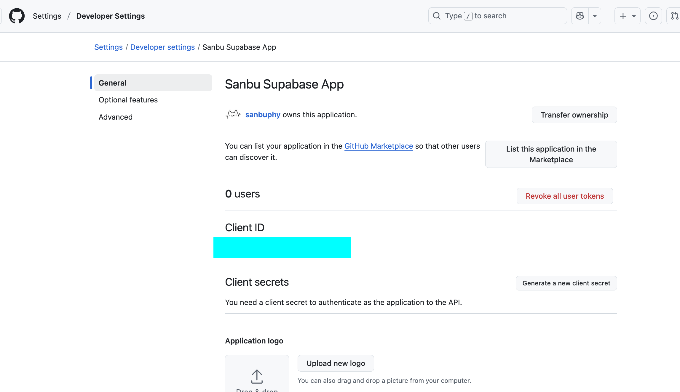 Application name(应用名称)、Homepage URL(生产域名,如https://my-app.com)、Authorization Callback URL(粘贴从 Clerk 复制的地址)。 - 点击 Register application ,再点击 Generate a new client secret ,保存生成的 Client ID 和 Client Secret (Secret 仅显示一次)。