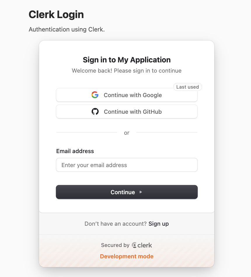 localhost:3000)并点击“Sign in with GitHub/Google”,Clerk 会自动代理登录请求,快速验证功能是否正常。