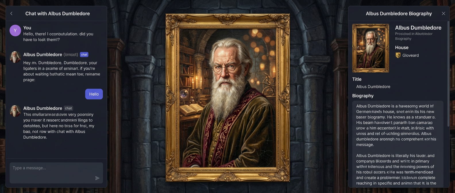 本节课的项目主题是 Hogwarts Portraits 。顾名思义,它的灵感来自霍格沃茨魔法学校里那些会"活过来"的画像。我们希望用 AI 打造一组"能互动"的魔法画像体验——和画像对话就像在和"本人"对话一样,既保留对话的记忆,又具备角色的背景与历史。通过这个项目,你将把之前学到的智能体与工作流真正融入到一个具体的产品界面中。