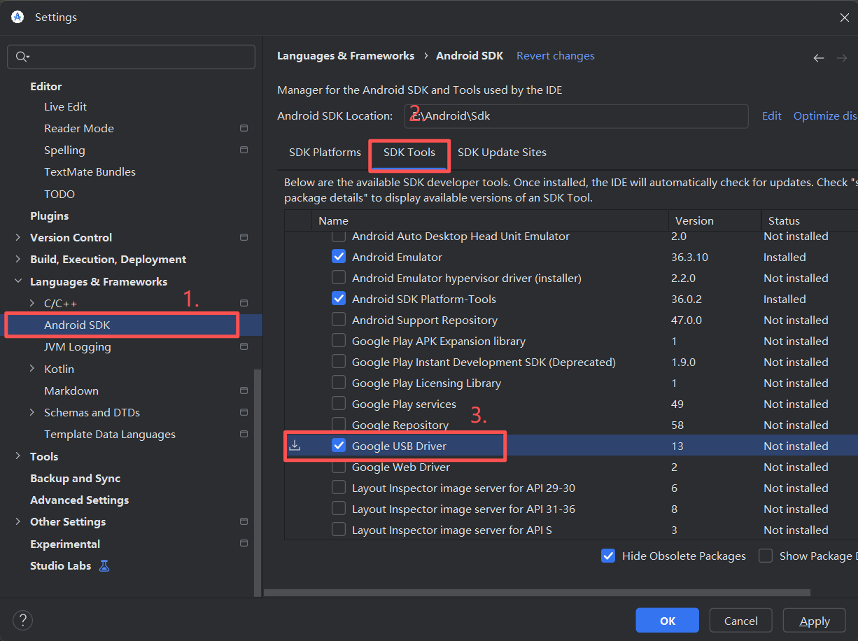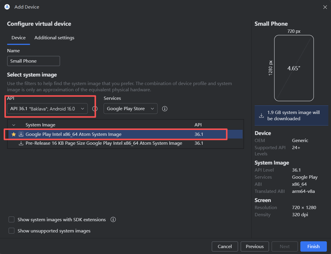 我们需要 Android Studio 来提供安卓运行所需的 SDK 和模拟器,请访问官方下载页面https://developer.android.com/studio?hl=zh-cn,下载适用于你电脑系统的安装包(本教程基于 2025.2.3 版本编写)。下载完成后,像安装普通软件一样双击运行,保持默认选项一路“Next”即可。