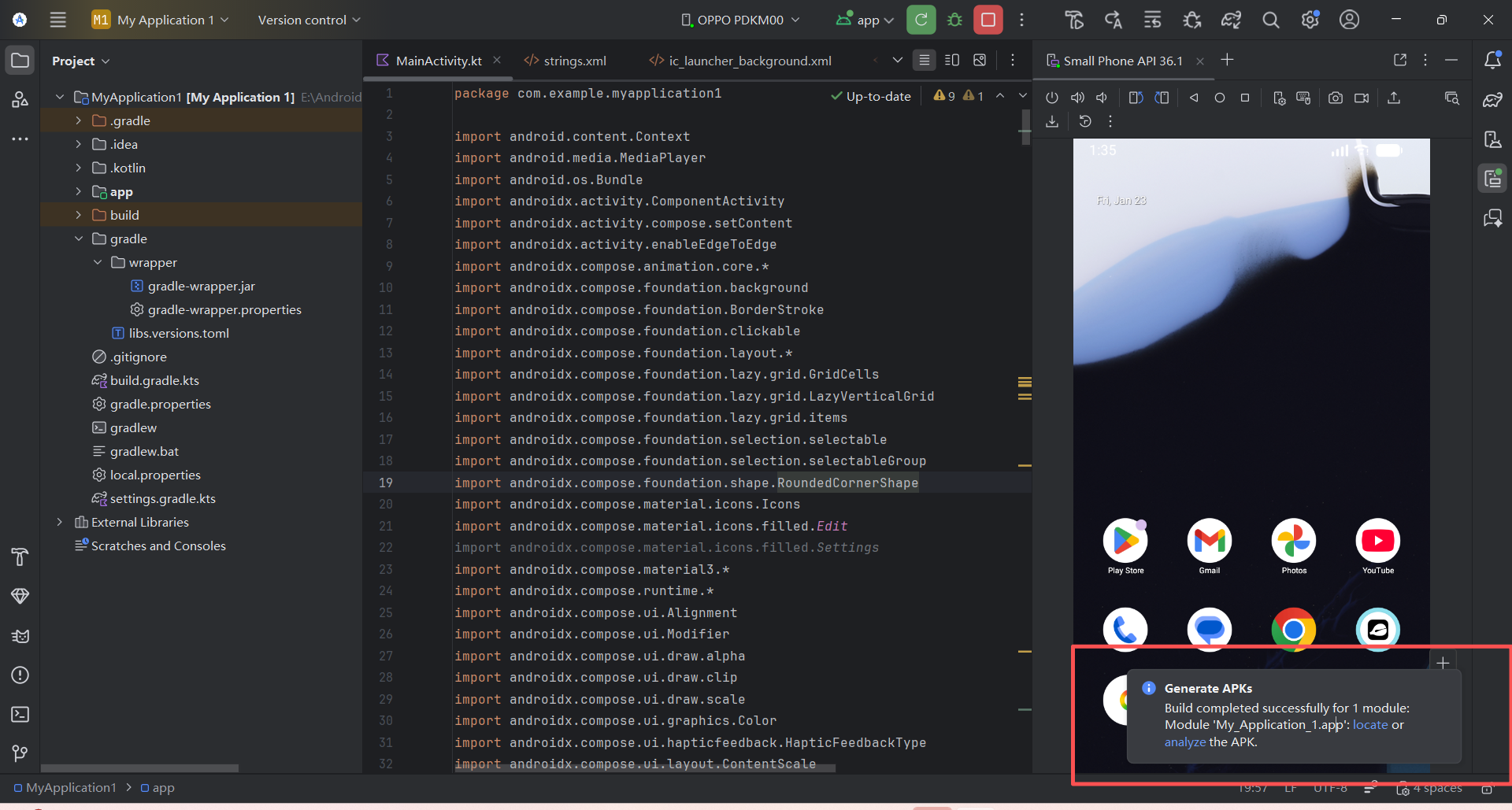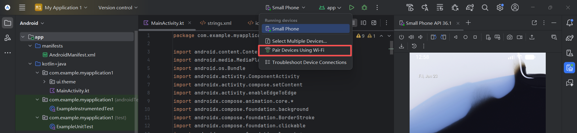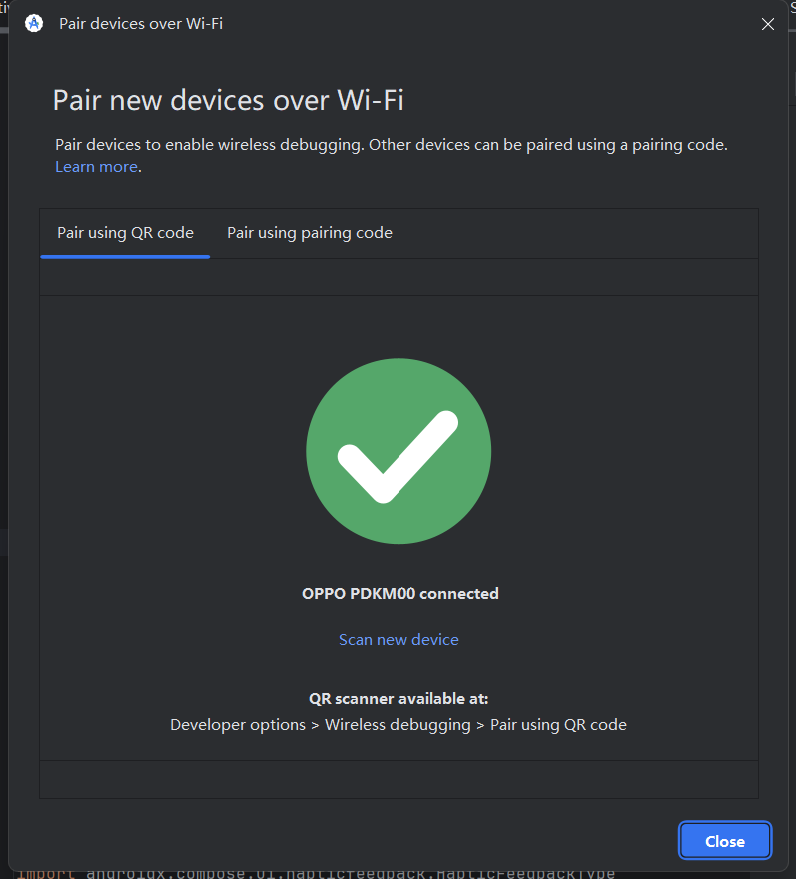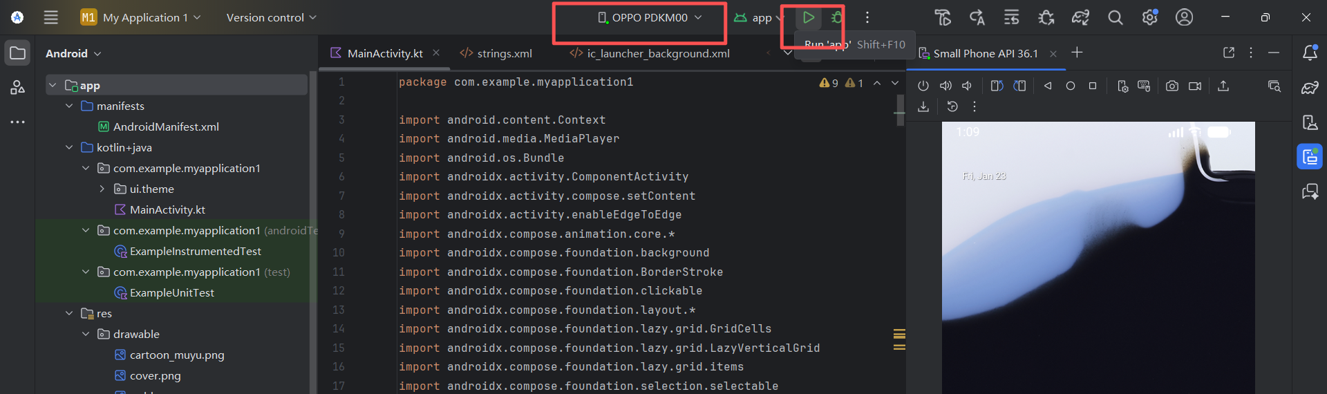 - 在 Android Studio 顶部设备选择器中,应能看到我们的手机型号(如 “OPPO-PDKM00”)。