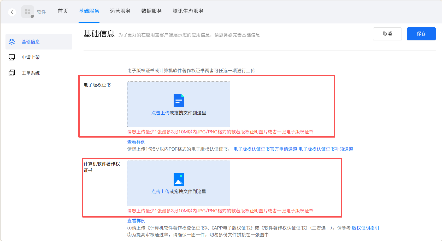 - 资质文件 :上传你的《软件著作权证书》扫描件。